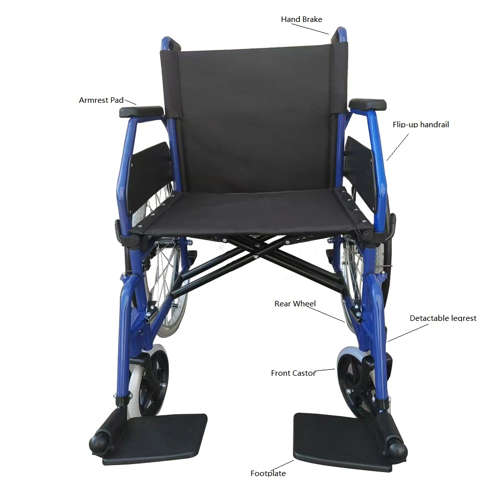 The manual wheelchair is a reliable & cost-effective manual wheelchair designed for daily mobility assistance. Engineered with a high-strength carbon steel frame and ergonomic seat design, it ensures maximum safety and comfort for elderly or disabled users. This Standard Manual Wheelchair is ideal for both indoor and outdoor use.